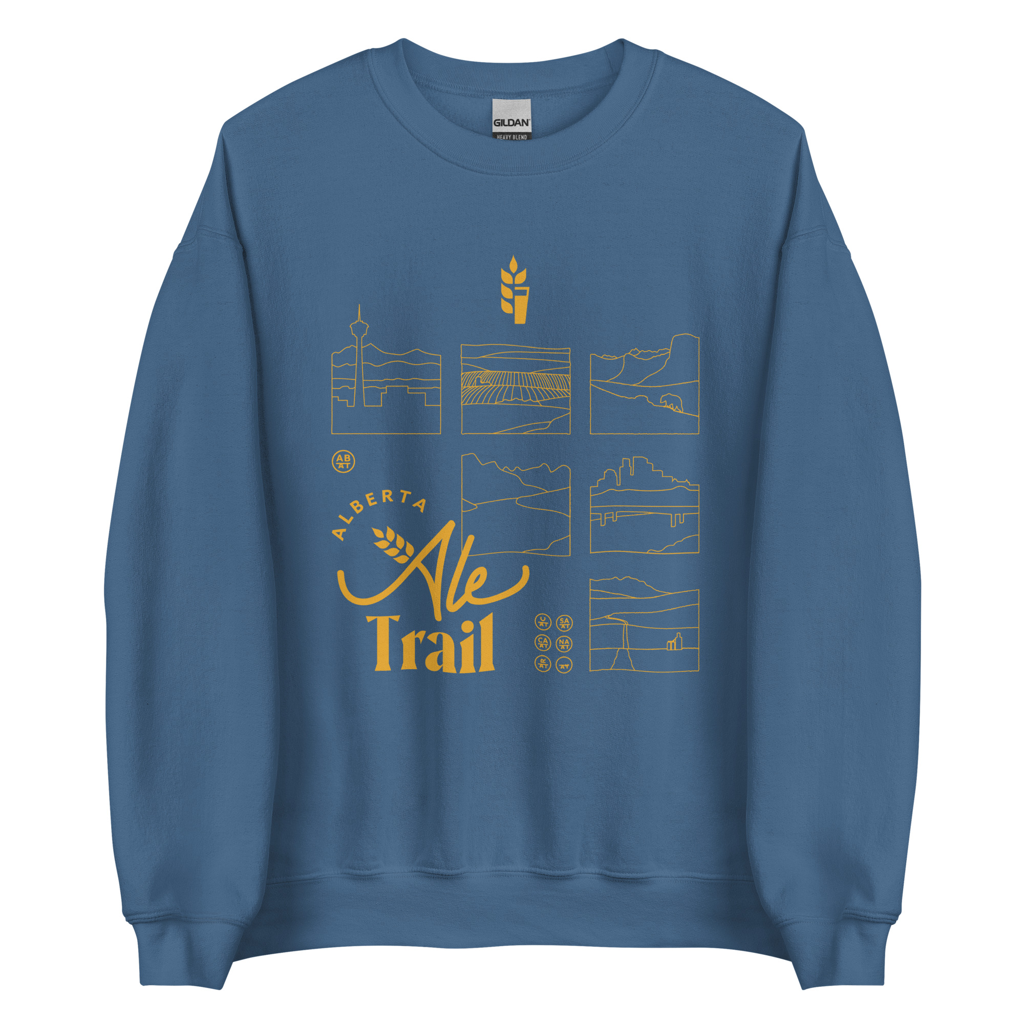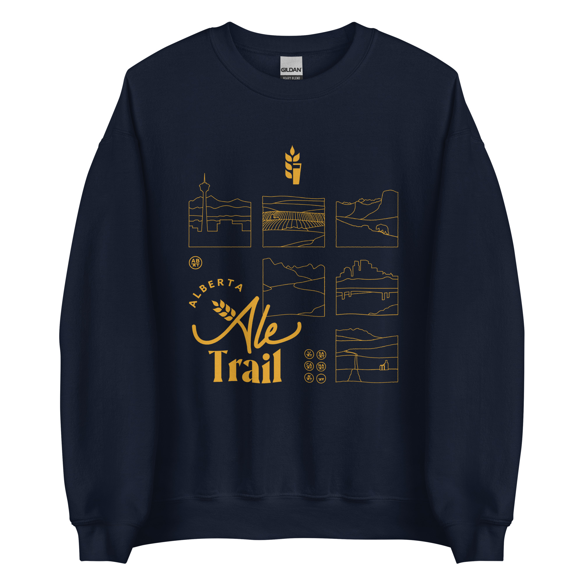 Comfy, classic, unisex sweatshirt with our Alberta Ale Trail region design on the front. Available in black, navy or indigo blue.